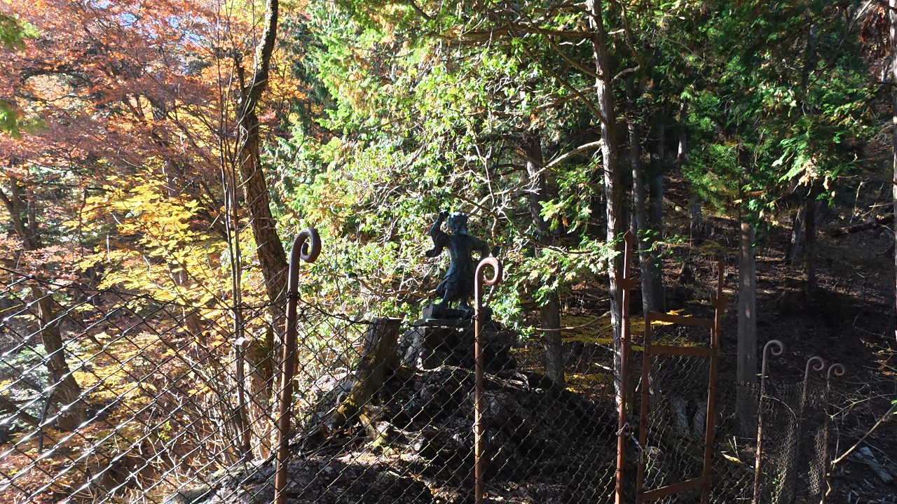 拝殿の少し下にある宝物殿と、畠山重忠の銅像。畠山重忠は、御岳山に縁のある鎌倉時代の武将だそうです。